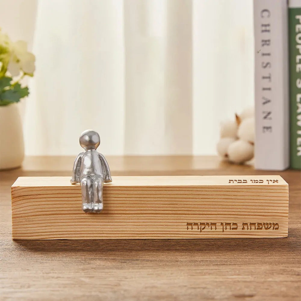 דגם מיני משפחה המורכב מפסלוני מתכת ייחודים ובסיס עץ איכותי עם חריטת לייזר של התיאור המרגש שלכם.